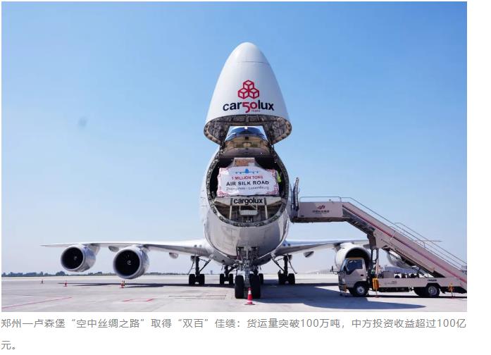 2014年1月,河南航投收購(gòu)盧森堡貨航35%股權(quán)簽約儀式在鄭州舉行。同年6月,首條鄭州—盧森堡國(guó)際貨運(yùn)航線開通,同年11月,盧森堡貨航鄭州航線貨運(yùn)量就突破1萬噸;2015年11月,貨運(yùn)量累計(jì)突破5萬噸,國(guó)際貨運(yùn)量、國(guó)際貨運(yùn)航線數(shù)、航班數(shù)量、國(guó)際通航點(diǎn)等主要指標(biāo)躍居鄭州機(jī)場(chǎng)首位;2016年6月,累計(jì)貨運(yùn)量突破10萬噸;2019年5月,50萬噸;2021年8月,80萬噸,2023年6月突破100萬噸。