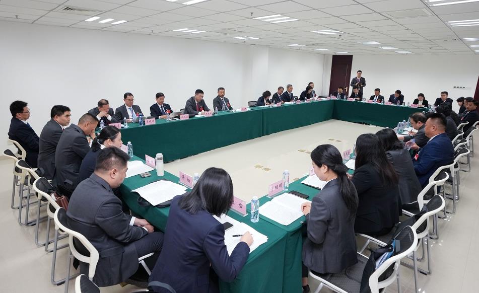 集團(tuán)領(lǐng)導(dǎo)班子成員與代表們討論報(bào)告。